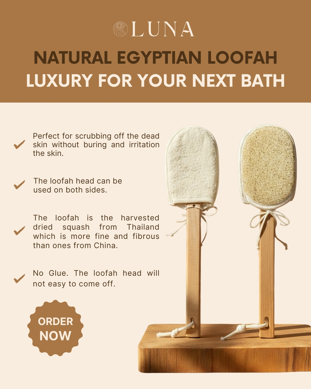 | Material | 100% Natural Egyptian Loofah (Luffa cylindrica) with wooden handle |