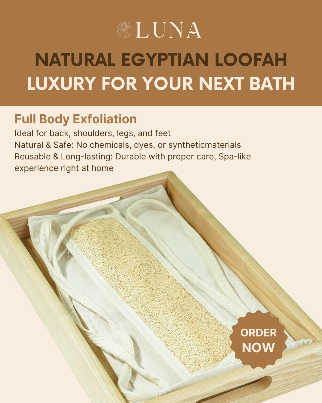 Material100% Natural Egyptian Loofah (Luffa cylindrica) & 100% Egyptian cotton