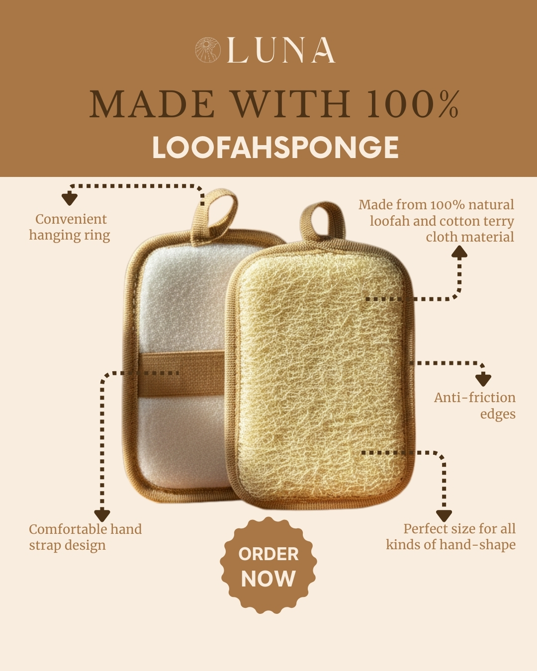 • Premium Quality: Made from high-quality Luffa cylindrica, raw and unbleached, with a soft 100% cotton backing.